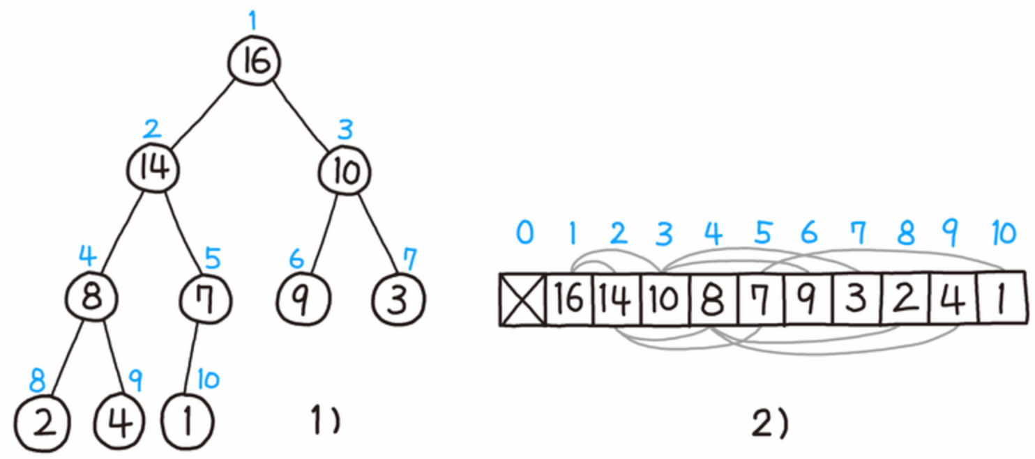 - 이진 힙은 이진 트리형태로 만들어진 min-heap, max-heap 을 말한다.